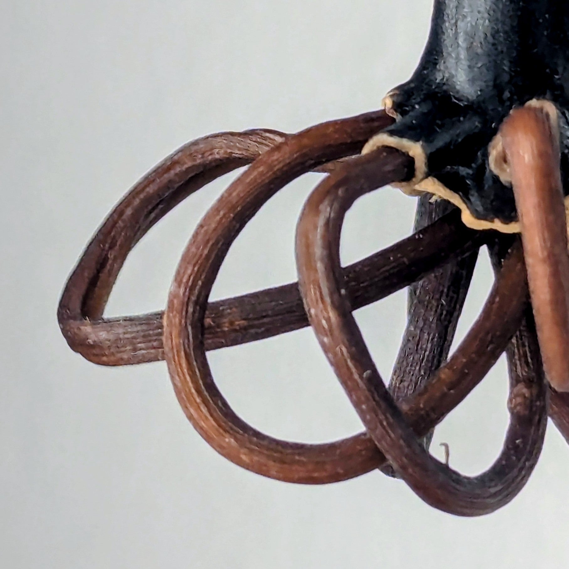 Feels somewhere between wood and leather. Lightweight despite its organic density. Finished with a protective acrylic coating.