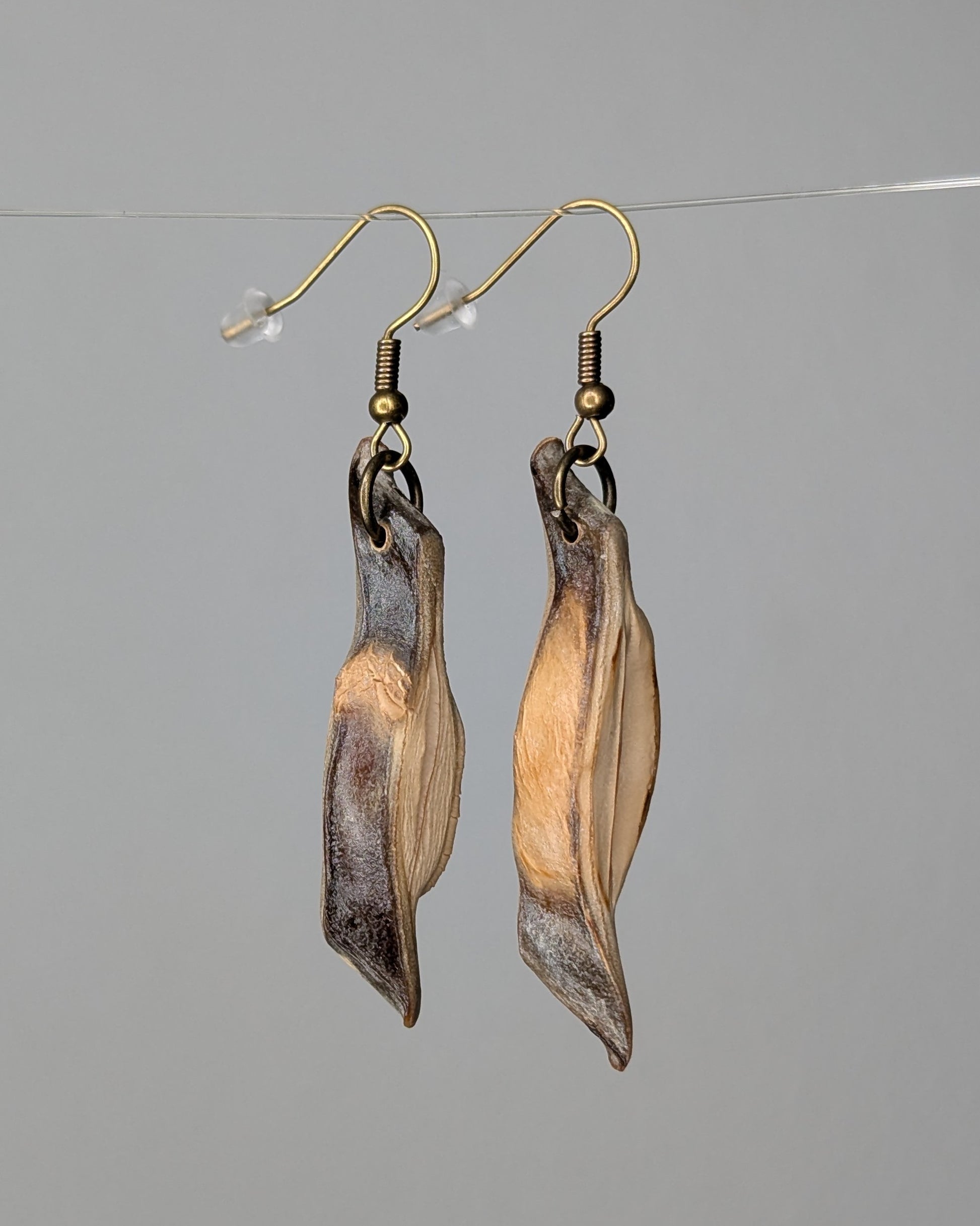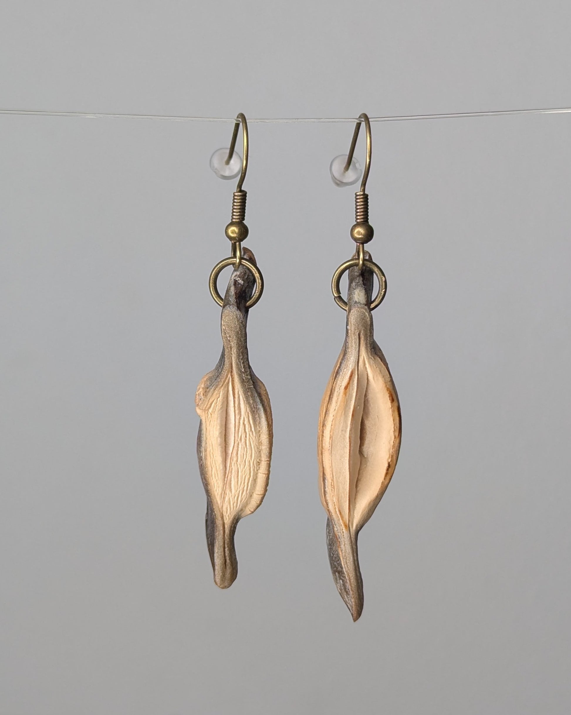 These one-of-a-kind earrings are formed entirely from California seaweed, hand-shaped into sculptural elements that hang freely and move with the wearer.