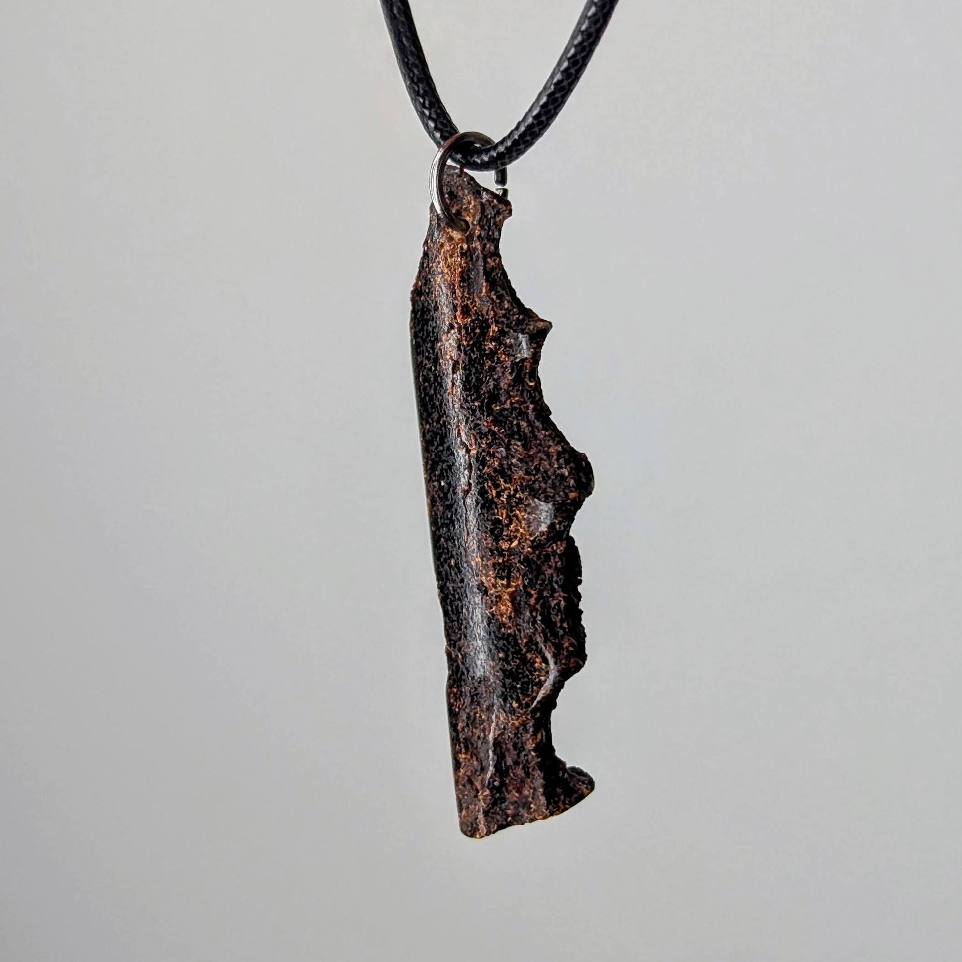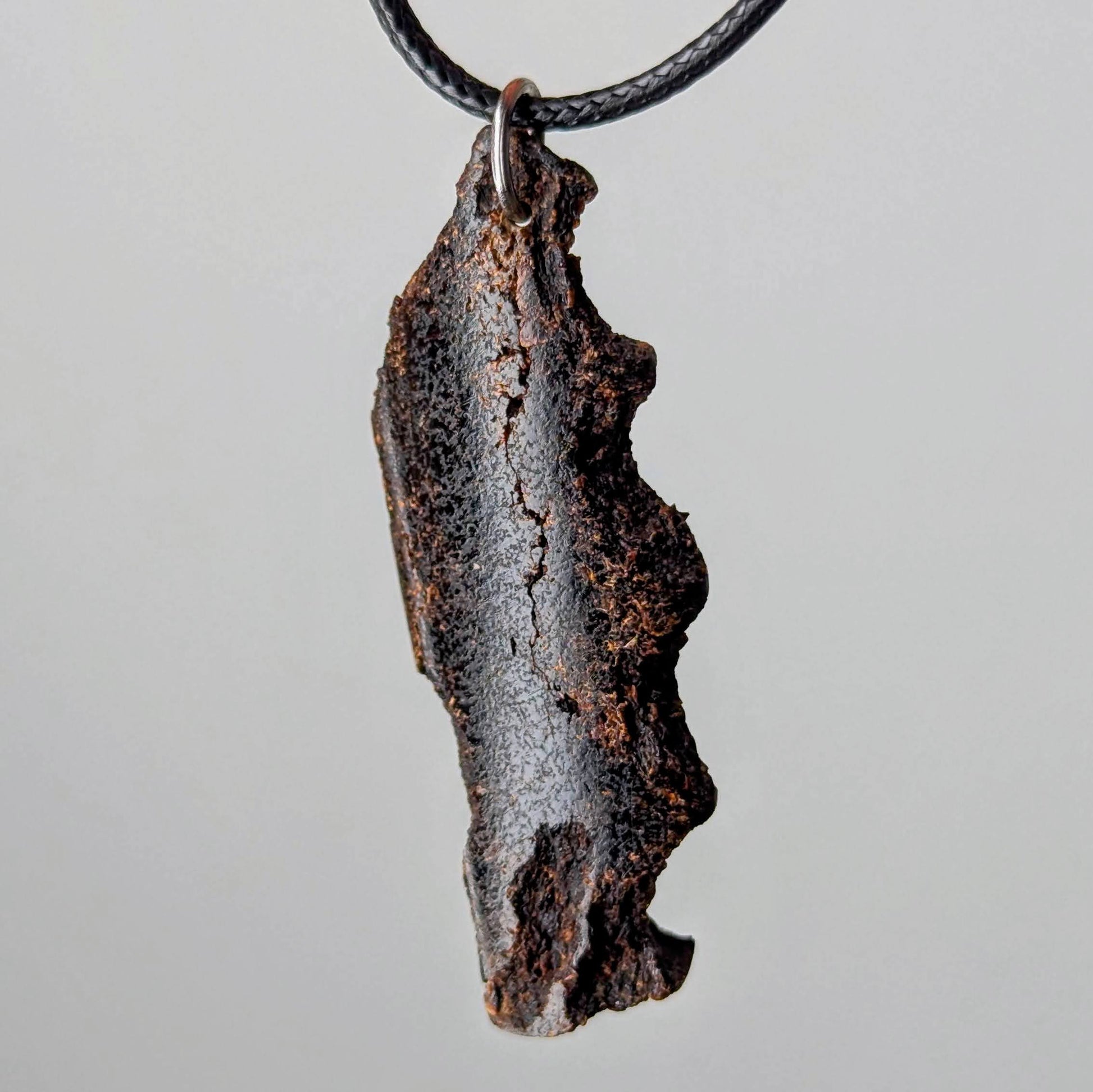 Not metal, not stone — ocean-grown material you’ve likely never encountered in adornment. Charred, cracked, and elemental, this pendant feels pulled from the edge of something once burning.