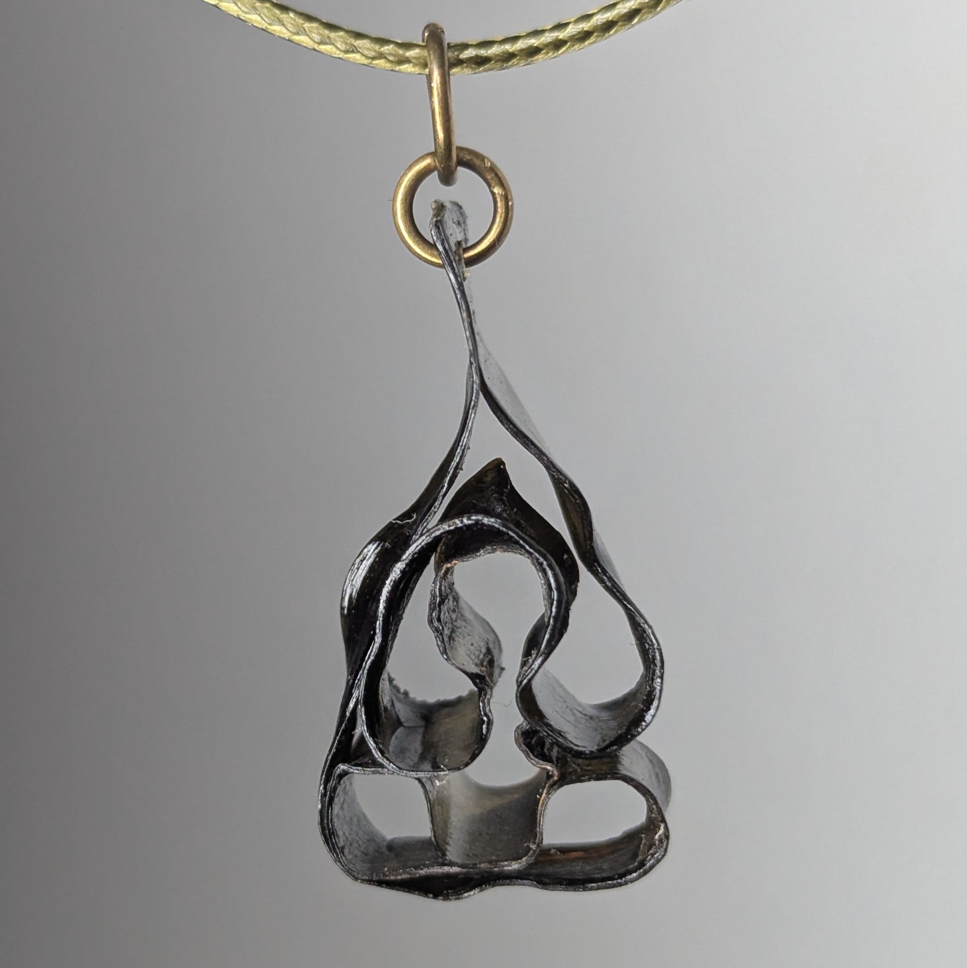 This pendant offers a single continuous form with two readings—seen from one angle, it’s a meditative figure; from another, a flicker of flame. Crafted from ocean-grown material you’ve likely never worn before.