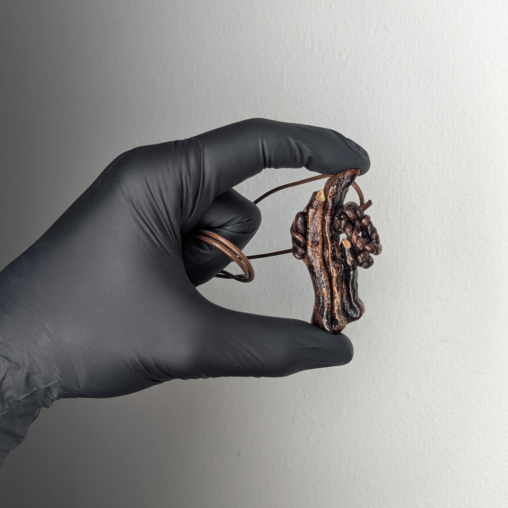 One-of-a-kind, hand-shaped unisex pendant formed from Pacific Ocean algae and preserved through a multi-stage method developed specifically for this material. Comes with a 3-year warranty.