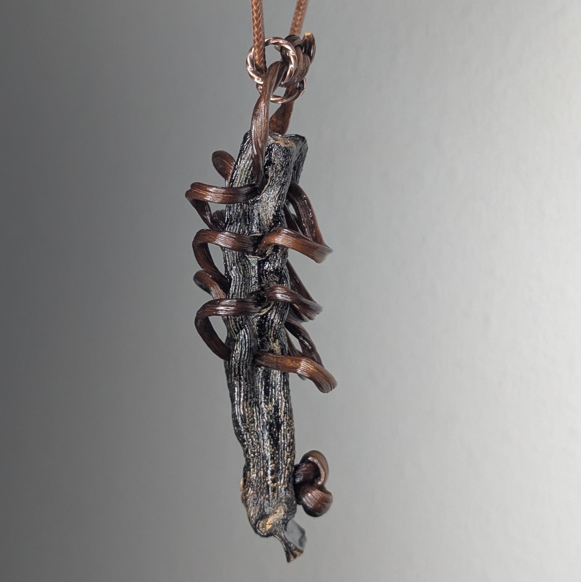One-of-a-kind, hand-shaped unisex pendant formed from Pacific Ocean algae and preserved through a multi-stage method developed specifically for this material. Comes with a 3-year warranty.