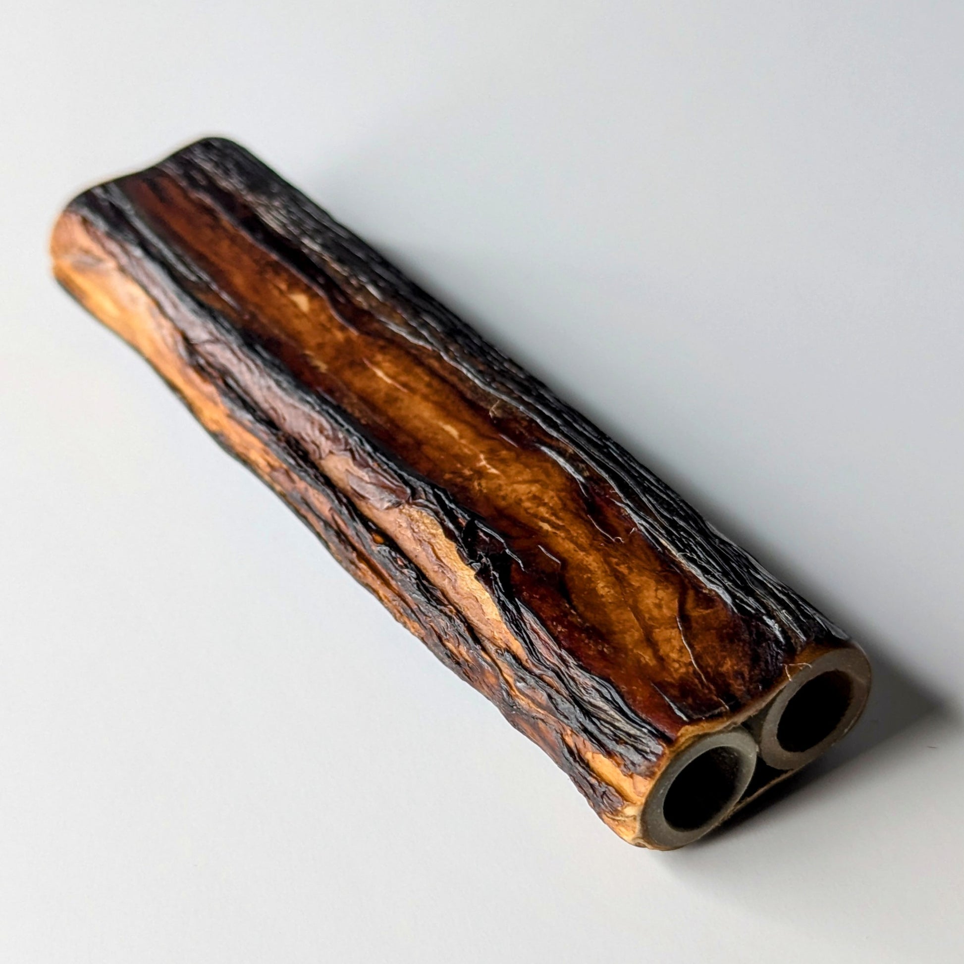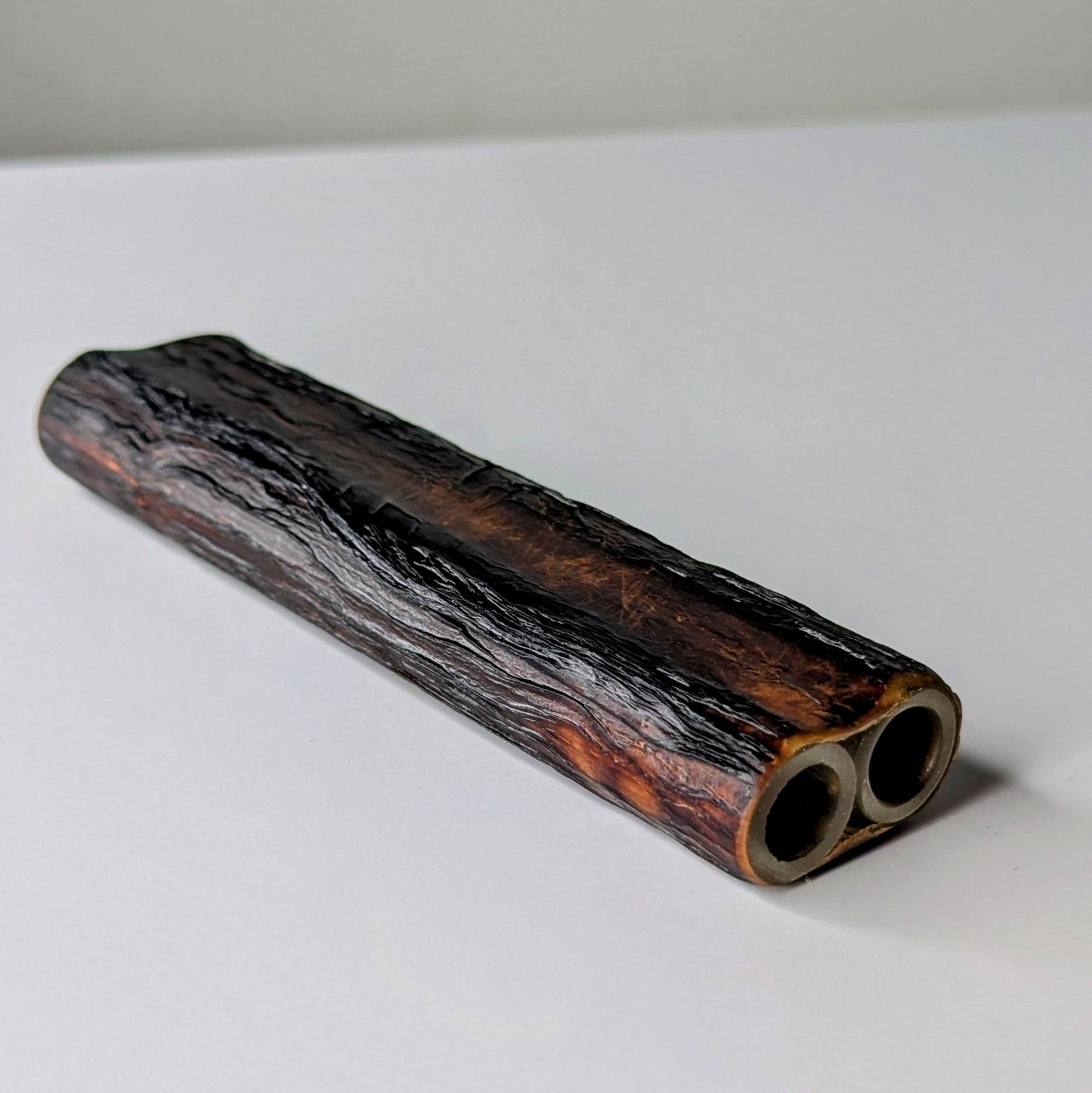 Designed for herbal rituals, it offers more than function. Its twin pathways invite breath to follow its currents, a quiet dialogue between fire and air.