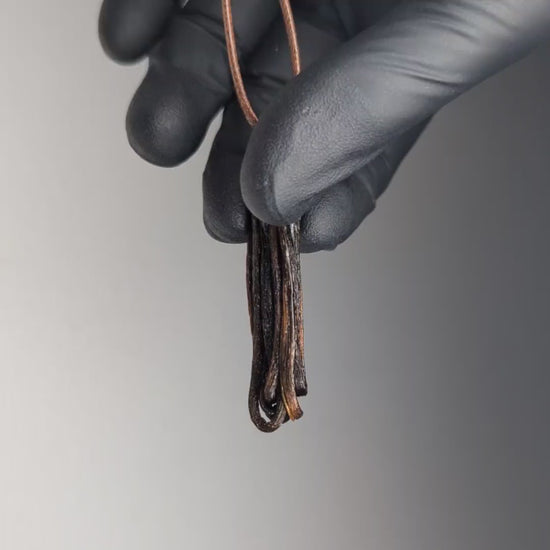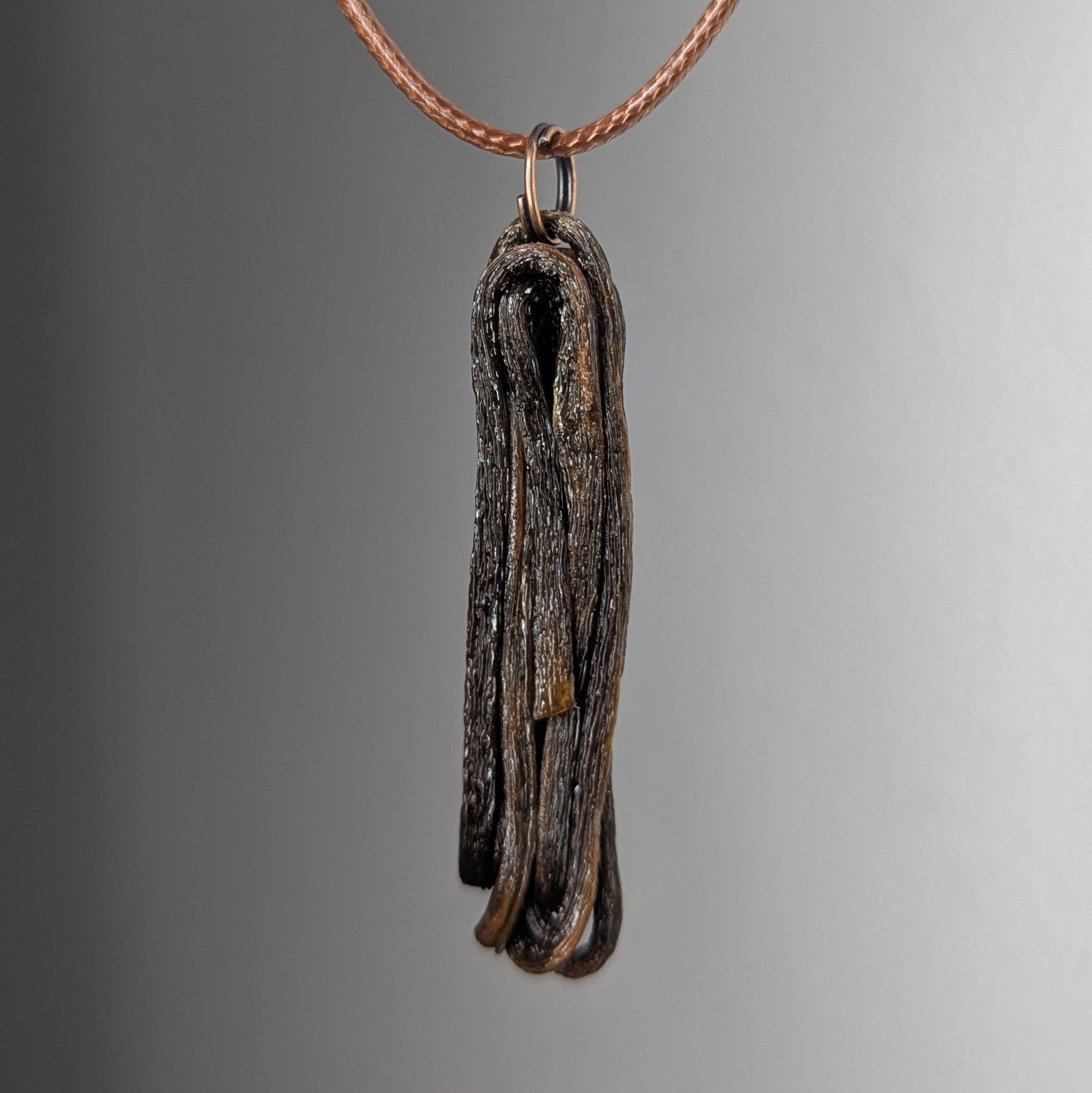 - Brown vegan leather cord runs cleanly through the ring — the pendant itself remains untouched and free-hanging