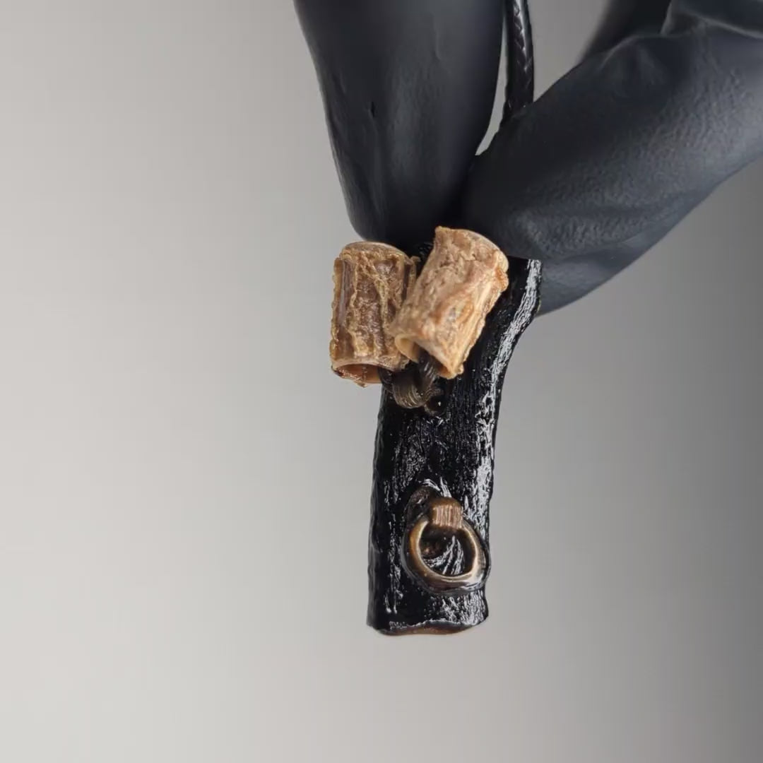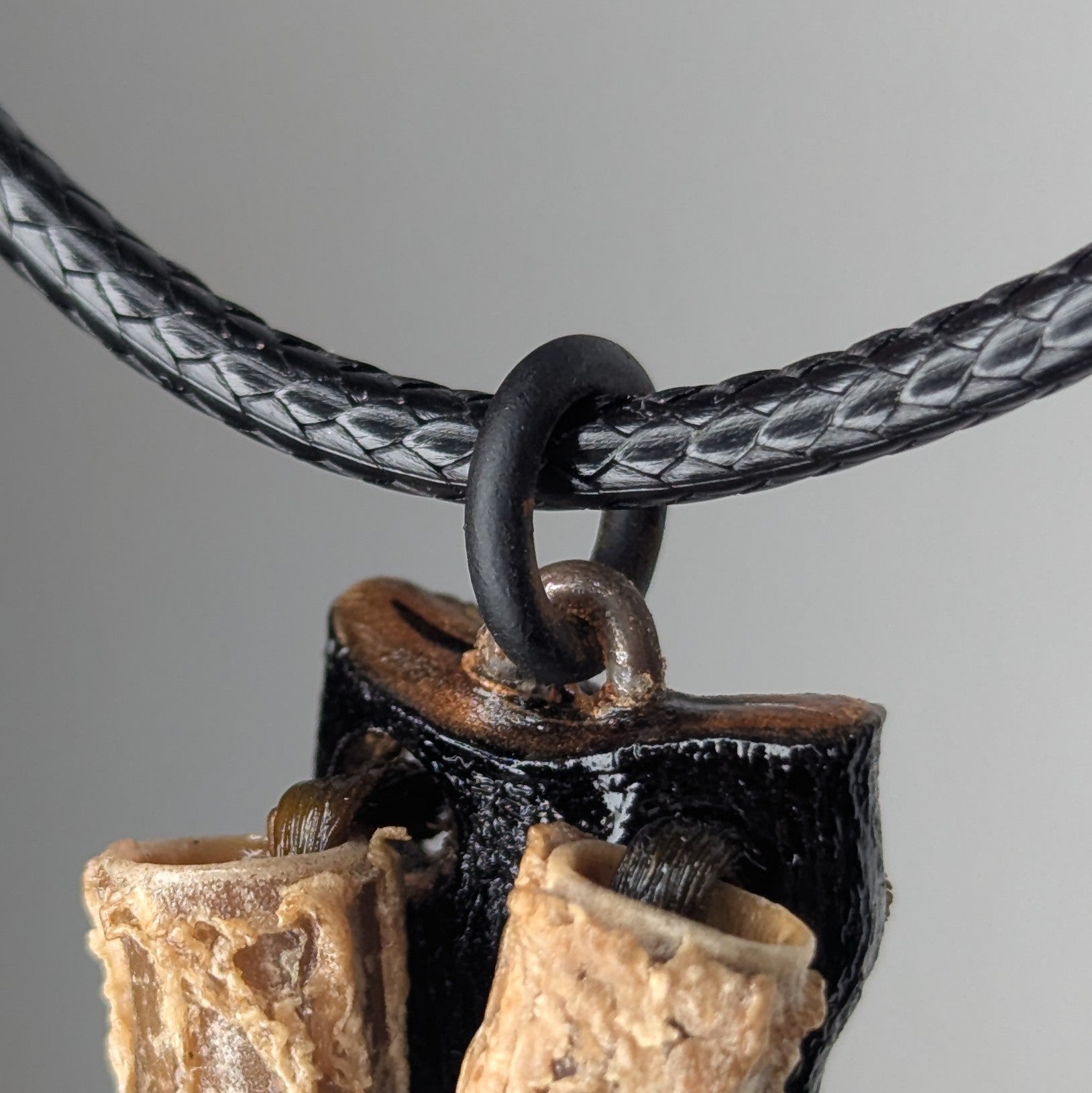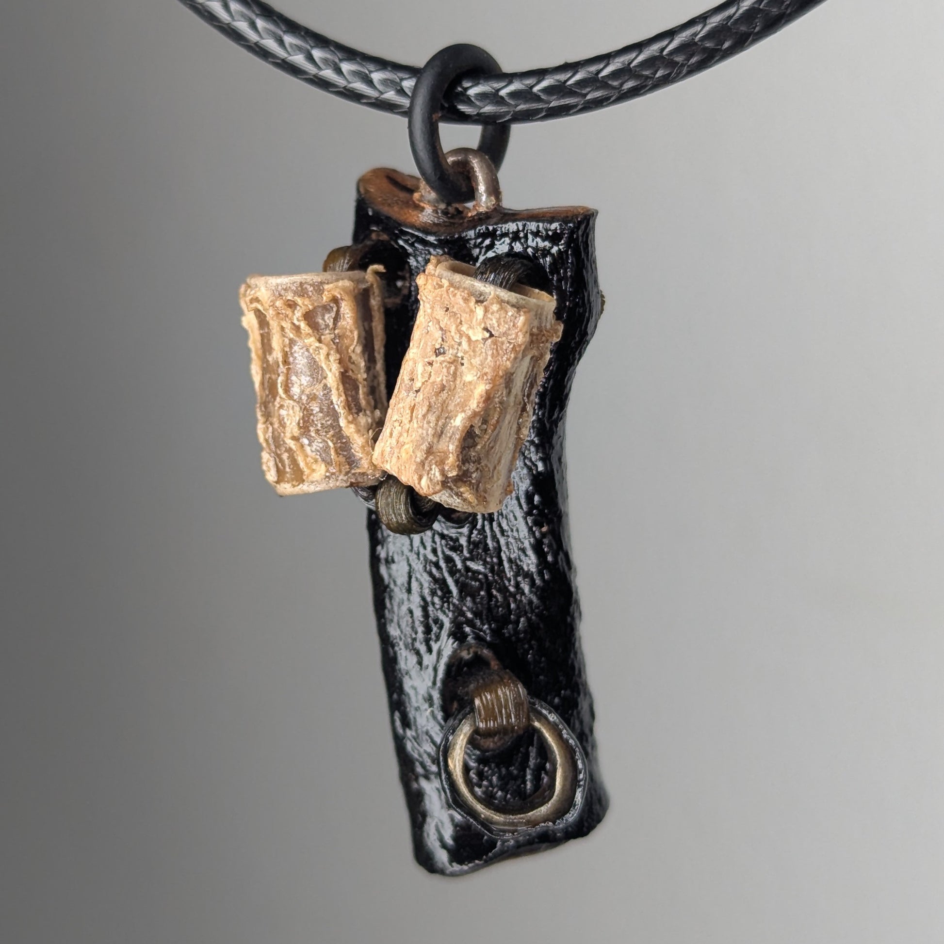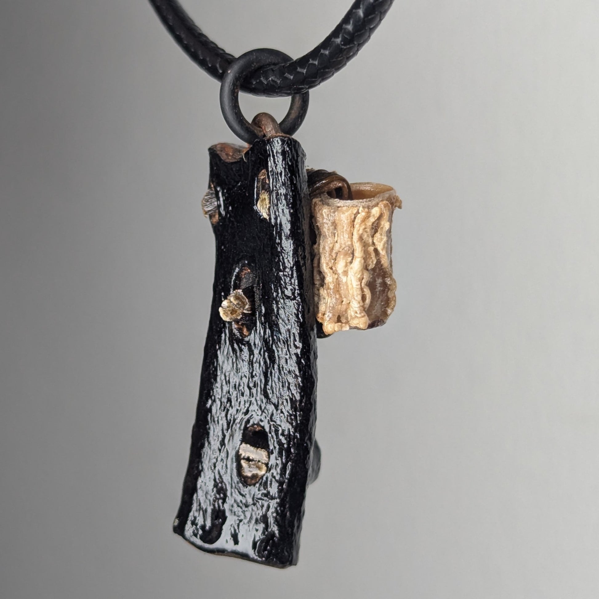 This pendant feels almost like a weathered mask — dark, expression-like, with protrusions where eyes and a mouth might be. Handcrafted from wild ocean material you’ve likely never worn before.