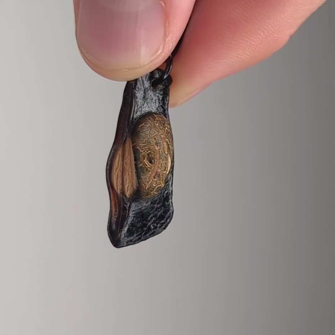 One-of-a-kind, hand-shaped unisex pendant formed from Pacific Ocean algae and preserved through a multi-stage method developed specifically for this material. Comes with a 3-year warranty.